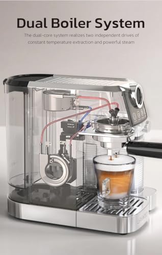 - Dual Boiler system realizes two independent drives of contant temperature extraction and powerful steam