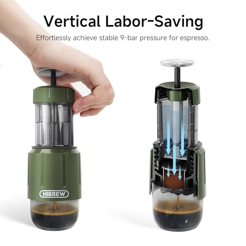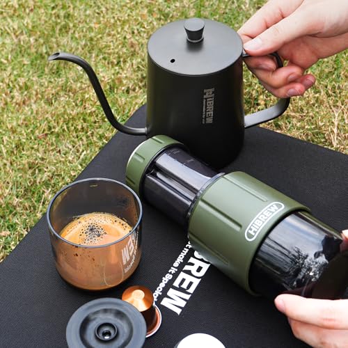 HIBREW - HIBREW H4D Manual Espresso Maker for Camping & Travel - Portable Hand-Pump Coffee Machine Built-in Cup, 2-in-1 Compatible Ground Coffee & Nes Original Pods