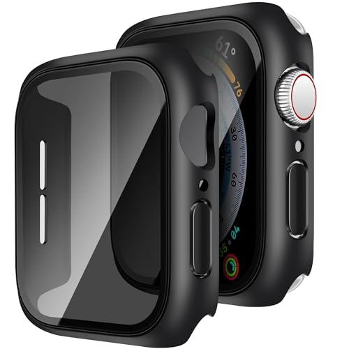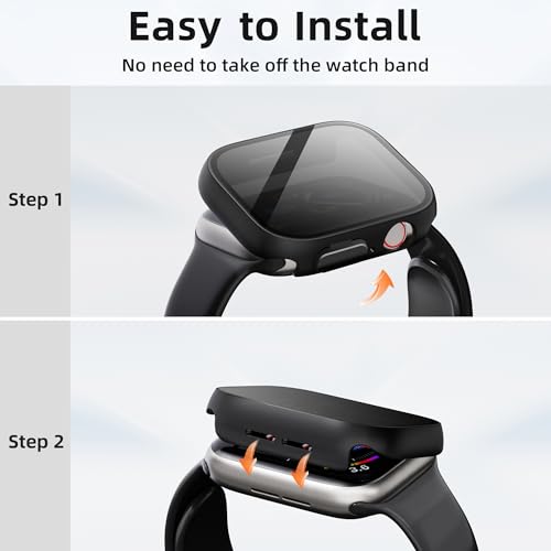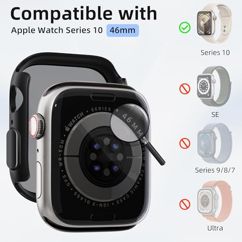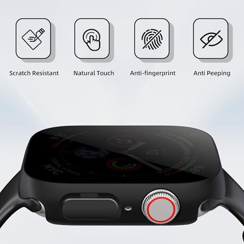 HIDOOING - واقي شاشة حماية للخصوصية لساعة ابل سلسلة 10 مقاس 46 ملم من هيدوينج، غطاء وجه من البولي كربونات مدمج مضاد للاختلاس، واقي من الزجاج المقسى بدرجة صلابة 9 لملحقات اي ووتش، اسود