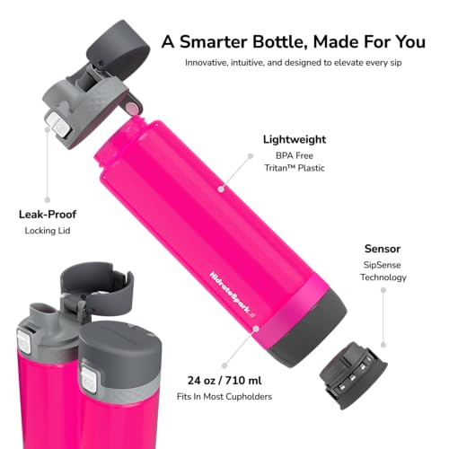 Hidrate Spark - Hidrate Spark PRO Lite Smart Water Bottle – Tritan Plastic – Tracks Water Intake with Bluetooth, LED Glow Reminder When You Need to Drink – Chug Lid, 24 oz, Fruit Punch
