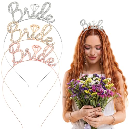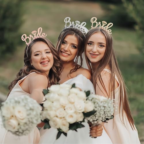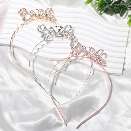 - 【Bride Decor】-- You will receive 3 bride headbands, featuring a metal crown design, sparkling rhinestone decor, and silver, gold, and rose gold options for you to choose from. After wearing the birthday headbands, you will become the princess and queen of the wedding party, taking photos as a memento and creating sweet memories for your wedding party
