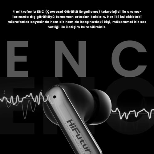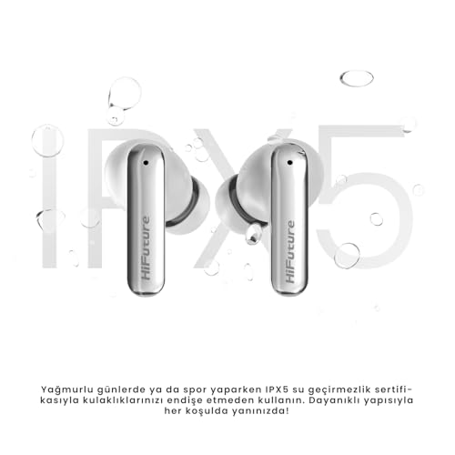 HiFuture - اتش اي فيوتشر سماعات اذن لاسلكية 4 ميكروفون اي ان سي من سونيك اير، وقت تشغيل يصل الى 35 ساعة، مقاومة للماء IPX5، مقاس مريح، مشغل 10 ملم، صوت جهوري ناعم، خفيفة الوزن، مساعد صوتي بالذكاء الاصطناعي، ابيض