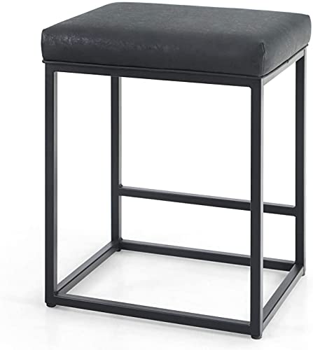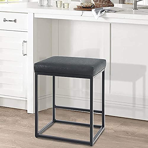 Generic - كرسي بار مرتفع مرتفع مع مسند للقدمين مصنوع من جلد البولي بدون ظهر للمطبخ ومقهى لتناول الطعام مع وسادة سميكة وقاعدة إطار معدني متين للاستخدام الداخلي والخارجي