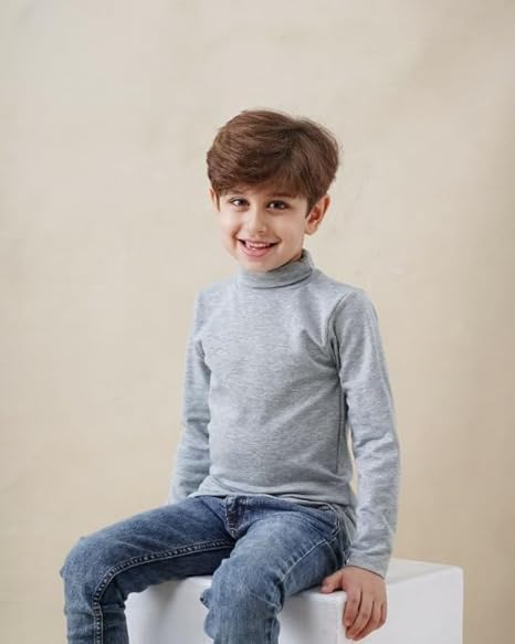 Generic - تيشيرت شتوي داخلي أساسي دافئ وناعم للطقس البارد بأكمام طويلة ورقبة عالية مبطن بالصوف، مريح ومزود بمسامات للتهوية للأطفال الأولاد والبنات