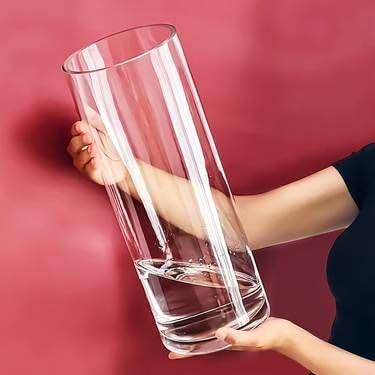 Generic - High Cylinder Glass Vase for Flowers, Clear, 30cm, for Home and Office Decoration