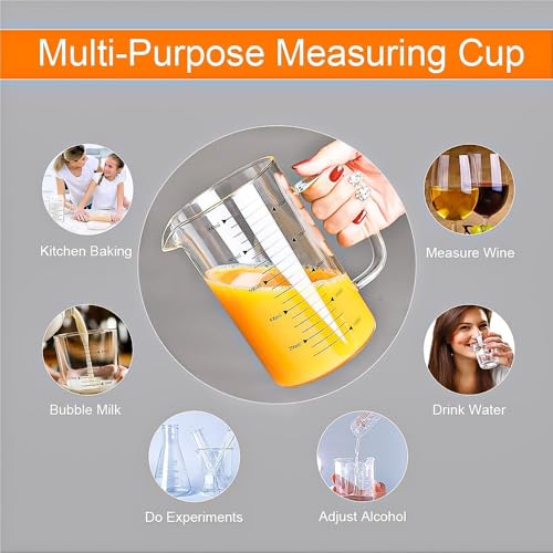 - Ideal Gift Choice: Simple & clear food grade glass measuring jug is favored by beverage, latte, coffee, milk, cocktail, tea lovers. And this glass measuring cup is the perfect choice for baking lovers. It is ideal gift in birthday, Christmas and so on.
