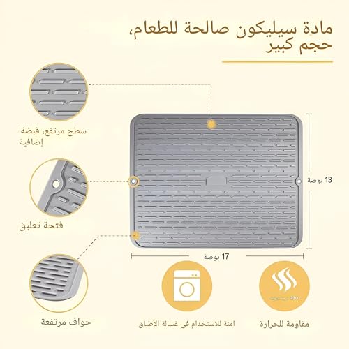 Generic - High Edged Dish Drying Mat - Extra High Borders for Quicker Dish Drying, Heat-Proof Silicone Material, Perfect for Kitchen Drainage, Measures 17 x 13 cm, Easy to Clean