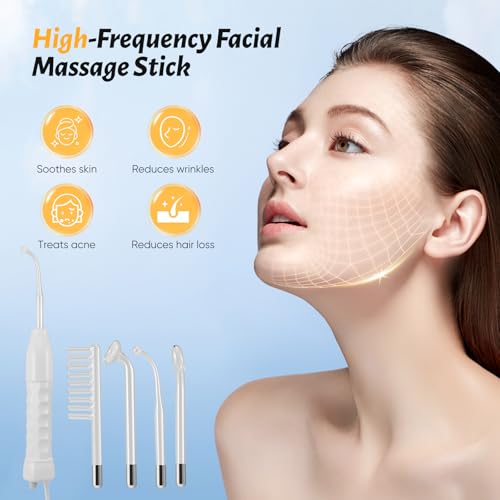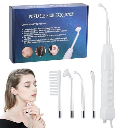 Crlvlyn - عصا لبشرة الوجه عالية التردد، جهاز محمول عالي التردد للعلاج بالضوء مع 4 أقطاب كهربائية لعلاج حب الشباب وإزالة التجاعيد وإعادة نمو الشعر وشد البشرة