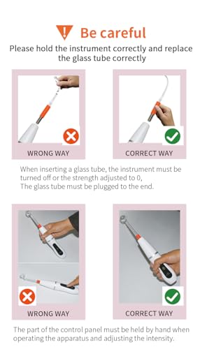 - أدخل القطب الكهربائي الزجاجي المطلوب في الجهاز عالي التردد، وادفع القطب الكهربائي بلطف ويجب تثبيته في مكانه. ثم أدر الجهاز عالي التردد إلى مستوى الصفر وقم بتشغيله.