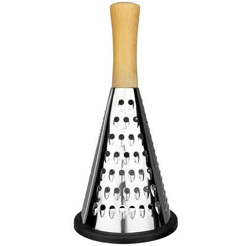 - STYLISH DESIGN: The combination of stainless steel and wood handle gives this grater an elegant look that complements any kitchen decor. Its stylish design not only makes it a practical tool, but it is also a stylish addition to your kitchen arsenal.
