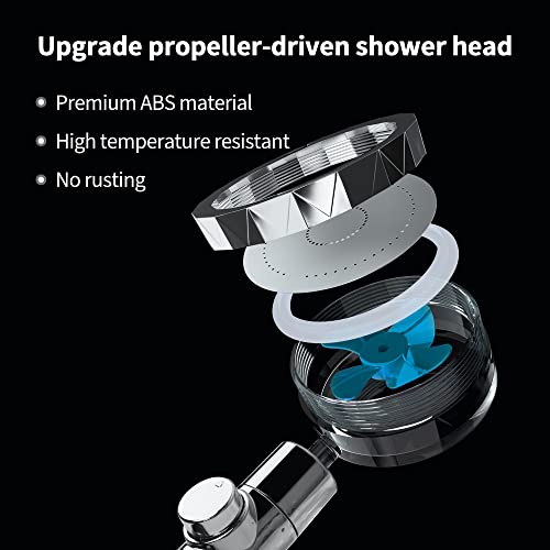 - 【Turbo Charged Design】: APETHS shower heads use a unique turbo-charged design. Hydro shower jet turbofan rotation increases water pressure. 360° adjustable spray head, a shower head with handheld adopts an environmentally friendly and durable ABS plating process and stainless steel panel, more durable, stain resistant and easy to clean.