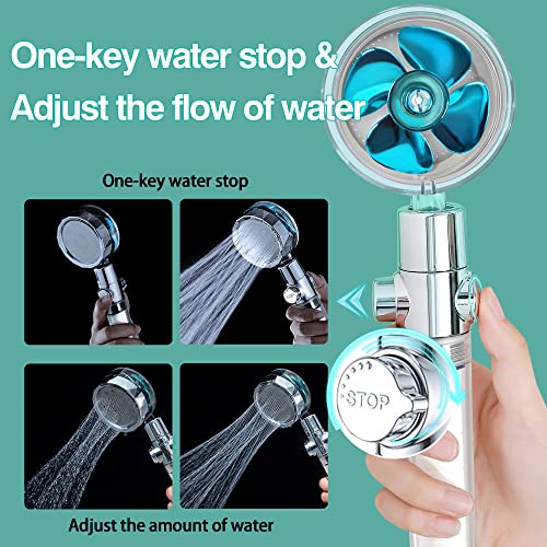 - 【One-key Water Stop+Adjust Water Flow】: The Turbo head shower head has an independent pause switch design & adjusts the size of the water flow .you only need to press the switch on the nozzle handle “stop” to stop the water or turn the controller can adjust the size of the water flow.