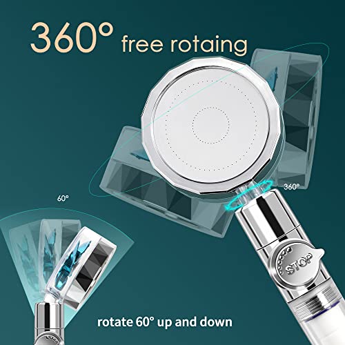APETHS - High Pressure Shower Heads, Handheld Turbo Fan Shower, Hydro Jet Shower Head Kit with 3 Filters and Pause Switch, Water Softener Shower Head Hydro Shower Jet Head Turbocharged Shower Head