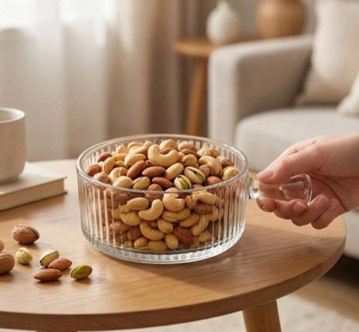 Generic - High-Quality 750ml Ribbed Thermal Glass Dish – Transparent, Durable, Heat Resistant, Ideal for Microwave and Oven Use, Perfect for Serving Food and Appetizers Stylishly (1 Piece)