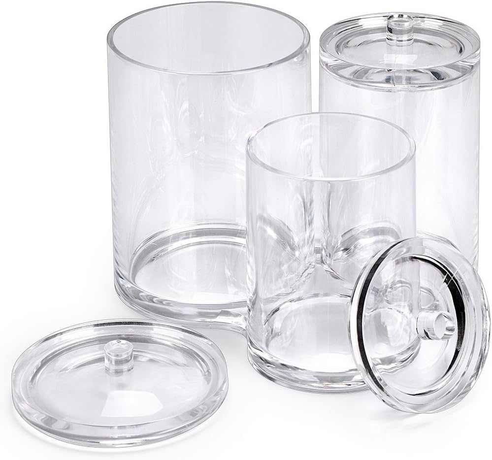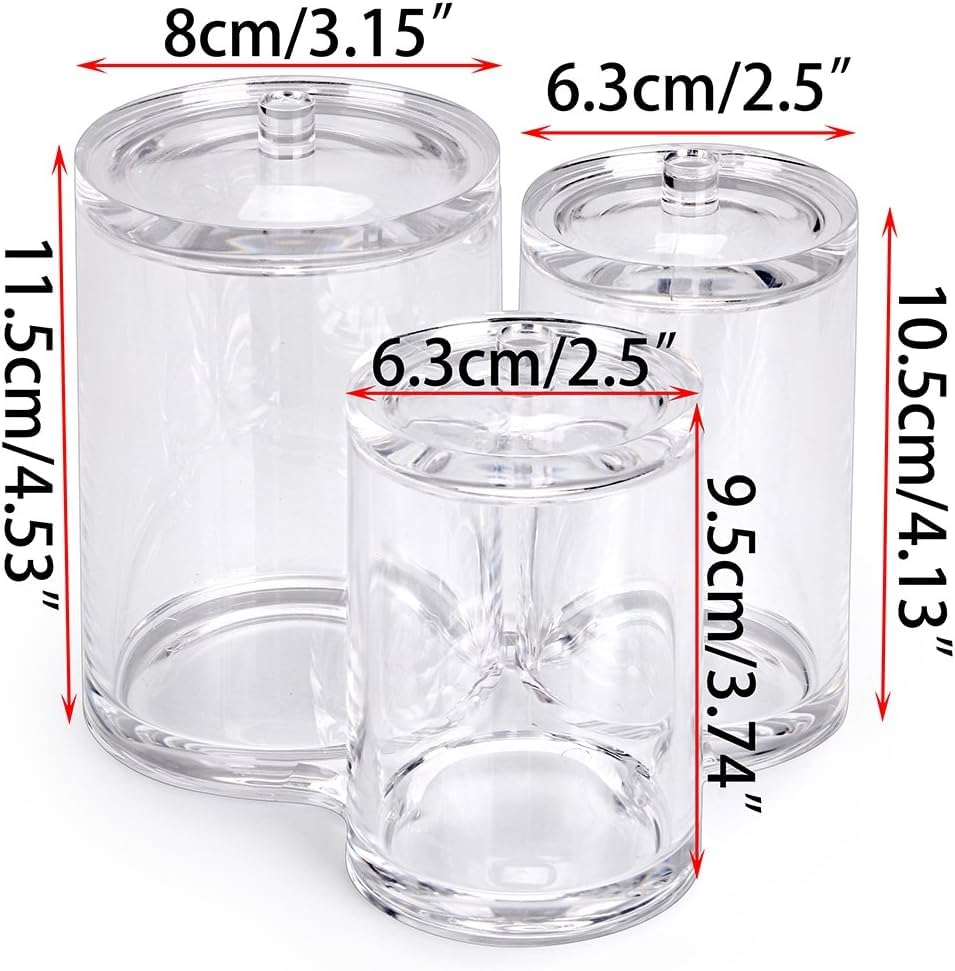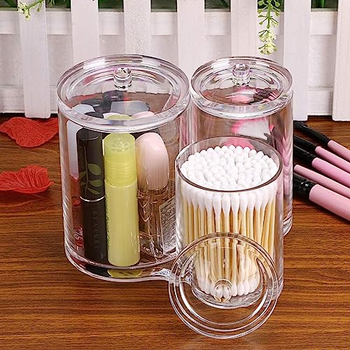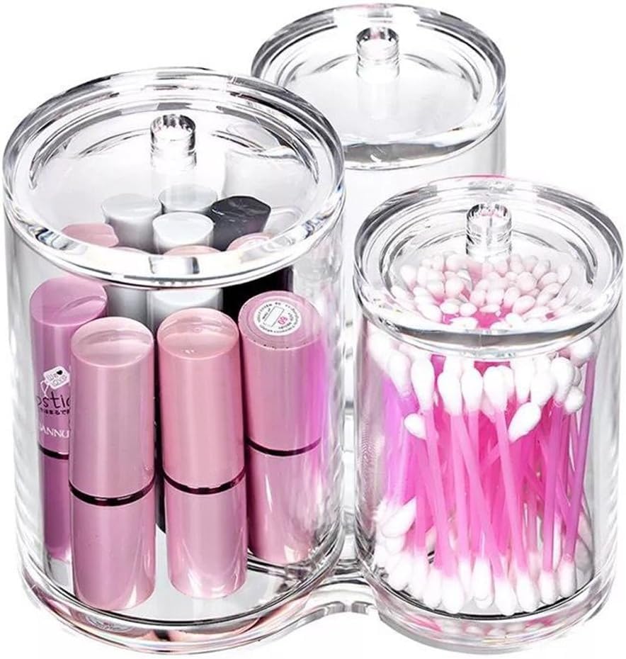 Generic - حامل اعواد قطنية اكريليك شفاف عالي الجودة، علبة دائرية لتنظيم فرش المكياج، برطمان صيدلي شفاف