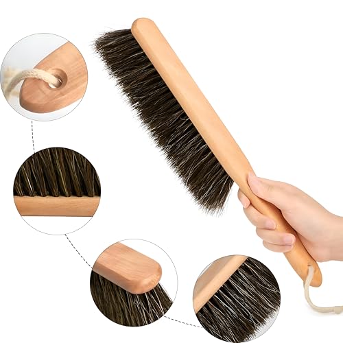 Generic - فرشاة غبار عالية الجودة - فرشاة غبار احترافية من شعر الحصان مع مقبض خشبي قوي، مثالية لإزالة الغبار بلطف وفعال من الأسطح الحساسة. (قطعتان خشنة)