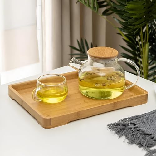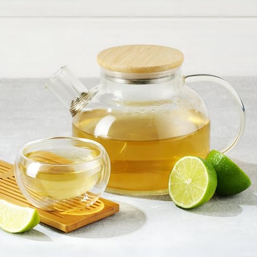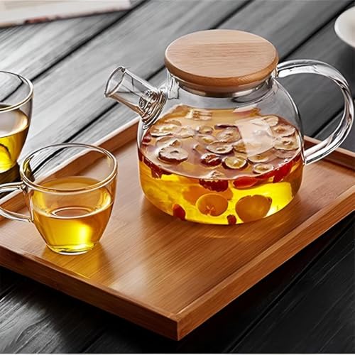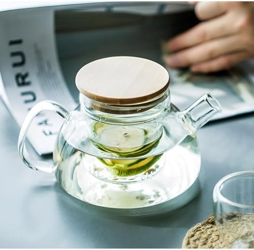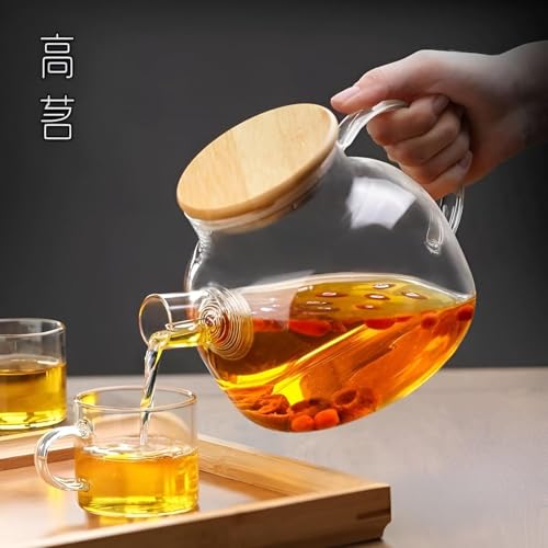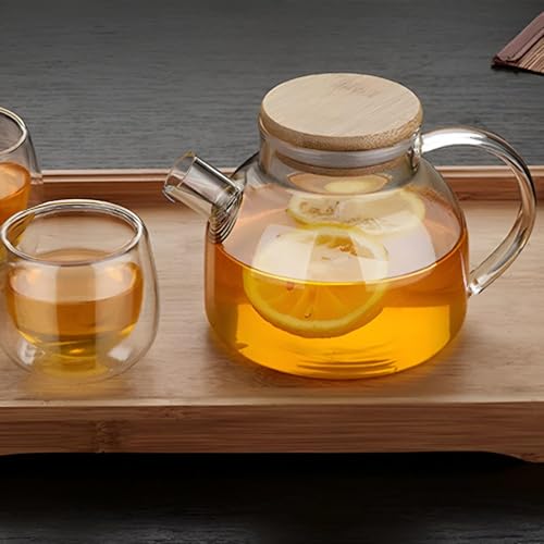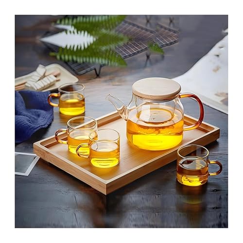 Generic - High Quality Glass Herbal Tea Infuser Set with 950ml Kettle and 4 Cups, Wooden Lid and Inner Strainer for Creating Refreshing Teas and Herbal Beverages