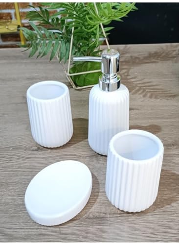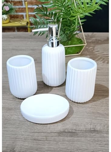 generic - High quality imported porcelain bathroom set consisting of 4 different pieces: soap dispenser, toothpaste organizer, and toothbrush organizer.