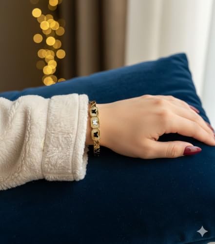 Generic - اكسسوارات هدايا مجوهرات نسائية عالية الجودة بأرقام رومانية على شكل زهرة وسوار من الستانلس ستيل المطلي بالذهب
