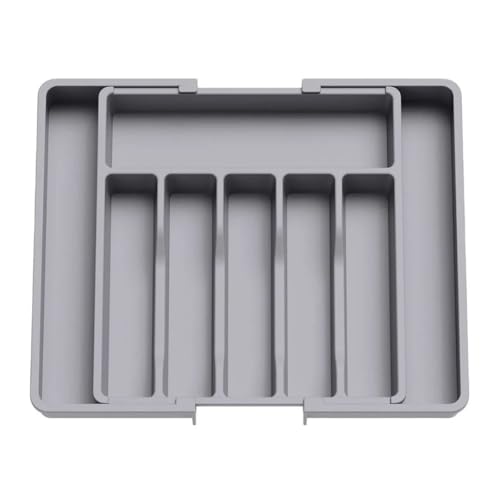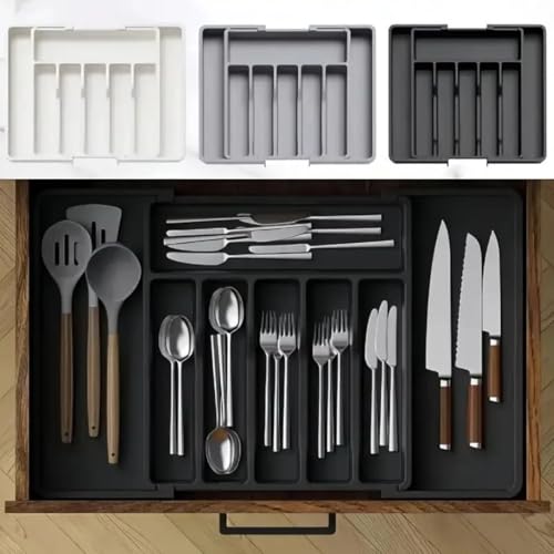 Generic - منظم درج معالق مطبخ بلاستيك عالي الجودة – تصميم قابل للتمديد لتوفير المساحة وتنظيم الأدوات بشكل أنيق – ألوان (أبيض، أسود، رمادي) (رمادي)