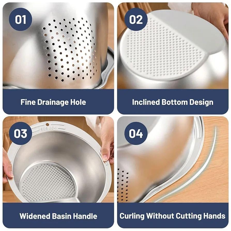 - 🥦🍎 تصفية مثالية للخضروات والفواكه: بفضل الفتحات الدقيقة والمتساوية، تضمن الصفاية إزالة الماء الزائد بسرعة مع الحفاظ على الأطعمة طازجة ونظيفة تمامًا.