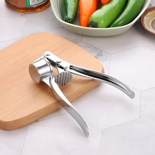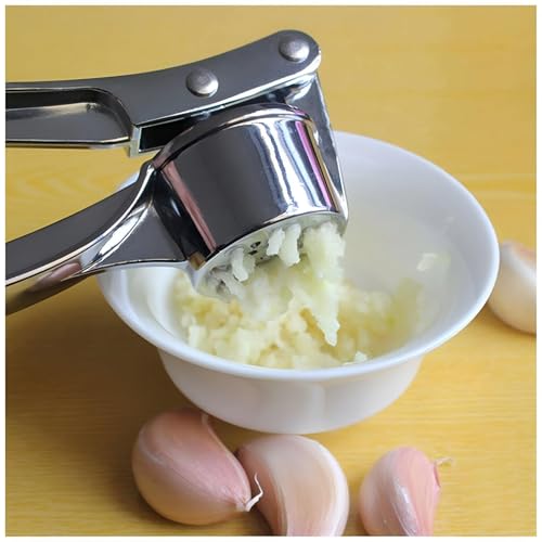 Generic - مفرمة ثوم عالية الجودة من الفولاذ المقاوم للصدأ مع وظيفة الضغط، باللون الفضي، مثالية لتحضير الثوم الطازج لأي طبق دون عناء