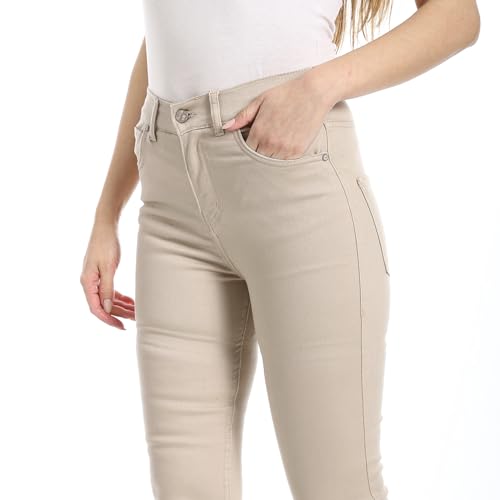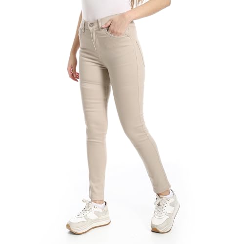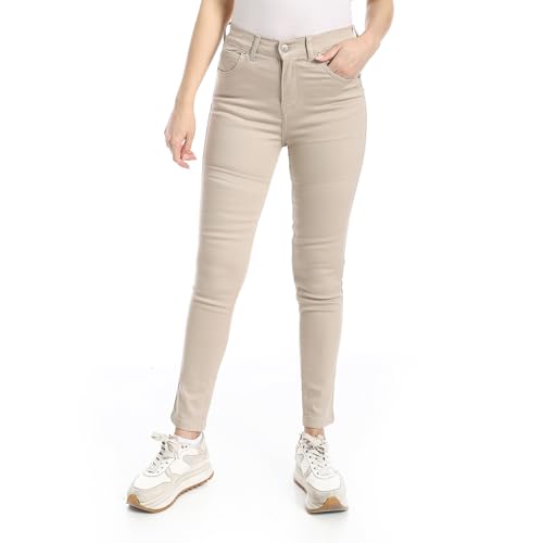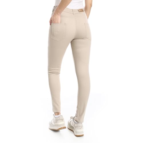 Coctail - بنطلون سكيني عالي الخصر، لون بيج، قطن مطاطي، قصة ضيقة-9674