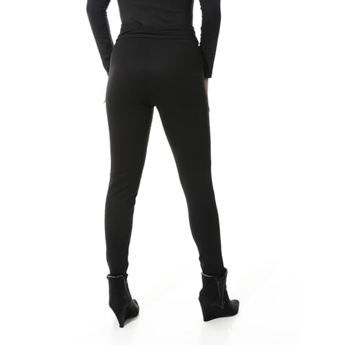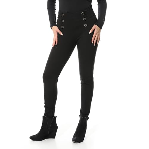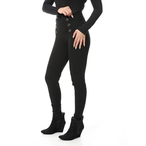 Coctail - High-Waisted Slim Fit Leggings with Decorative Buttons, Black-19297