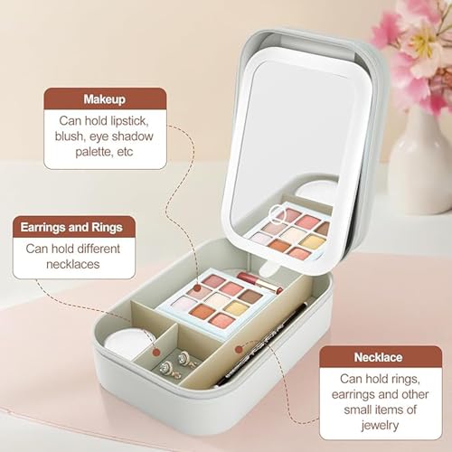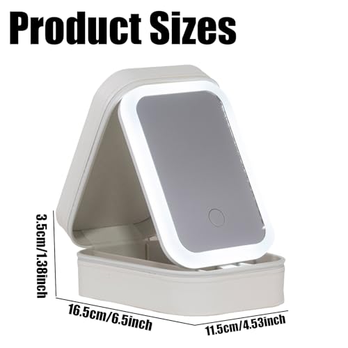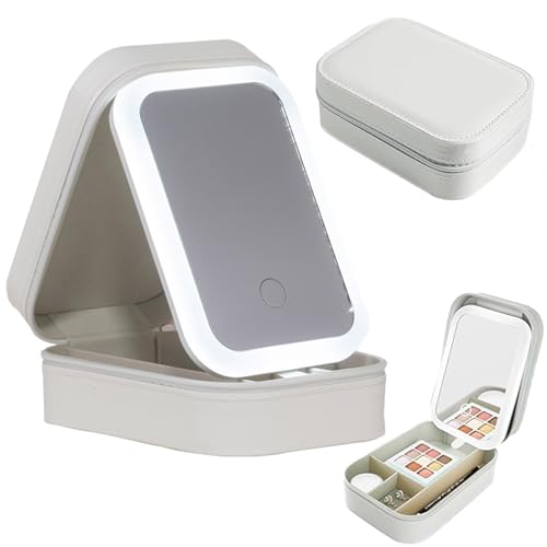 HIHIDAY - شنطة مكياج محمولة باضاءة LED مع مراة مضيئة قابلة للتعديل من هايهايداي - شنطة مستحضرات تجميل باضاءة ثلاثية الالوان مع مساحة تخزين متعددة وصندوق مجوهرات ومراة زينة LED (ابيض)
