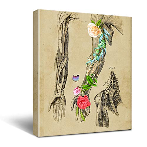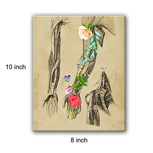 Hijie - تابلوه حائط فني قماشي برسومات تشريحية لليد، هدية مثالية لمكتب الاطباء والخريجين من كلية الطب والعاملين الاجتماعيين 8×10، بيج