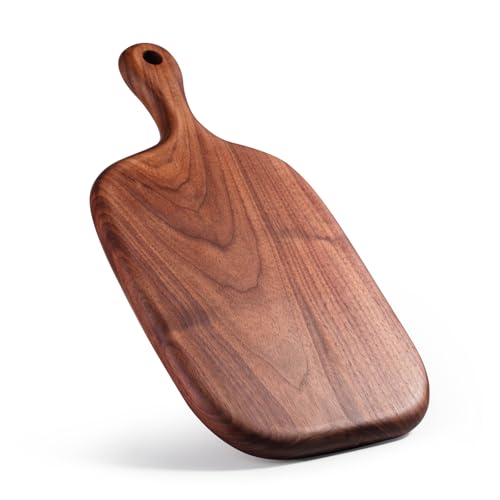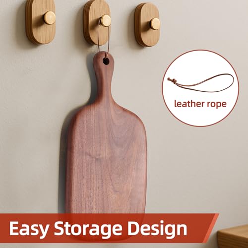HIKTYEI - لوح تقطيع من خشب الجوز من هيكتيي، لوح تقطيع خشبي صغير مع مقبض وفتحة للتعليق، الواح جبن للمطبخ والخبز والخضروات والفواكه، الواح صلبة بدون صمغ للنقش الخشبي، 15.2 × 7.3 انش