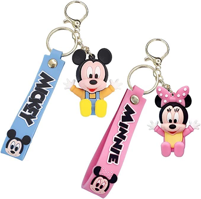 Hilloly - Hilloly Mickey Mouse Keychain 2 Pieces Cartoon Silicone Keychains Mickey Minnie Figure Keychain Minnie Accessory Backpack Keychain Car Pendant Keychain Trinkets for Gift Birthday