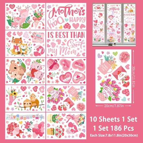HiloPack - ملصقات نافذة لديكورات عيد الأم من هيلوباك 10 أفكار هدايا السعيدة لمستلزمات حفلات ديكور أفضل أم على الإطلاق للنوافذ الزجاجية Mom