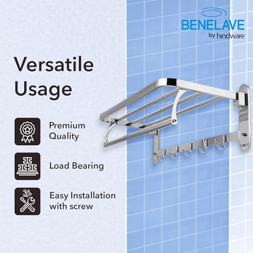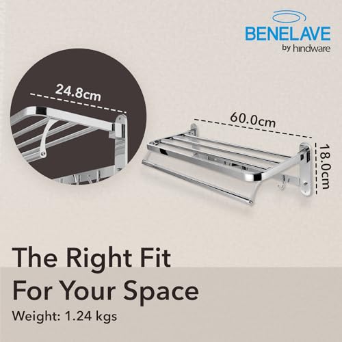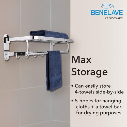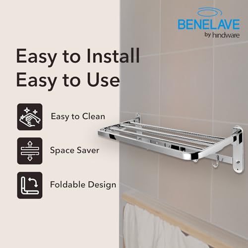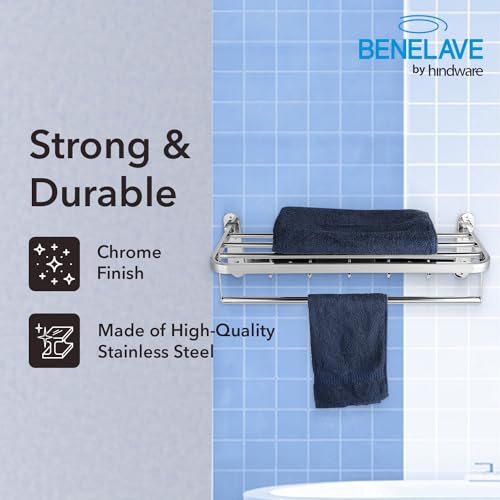 Hindware - Hindware Benelave Bathroom Accessories Bathroom Towel Shelf - Eco | Made of Stainless Steel | Stylish & Convenient | Space Saving