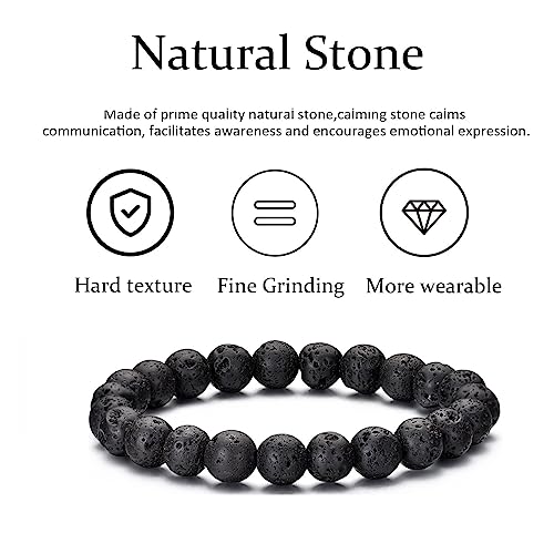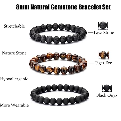 Hipwope - MOROTOLE 3Pcs Men Bracelet Set Tigers Eye Bracelet Lava Rock Bracelets Obsidian Bracelet Men/Women Can Wear Summer Bracelets Charm Bracelets for Women Anxiety Bracelet for Stress Relief