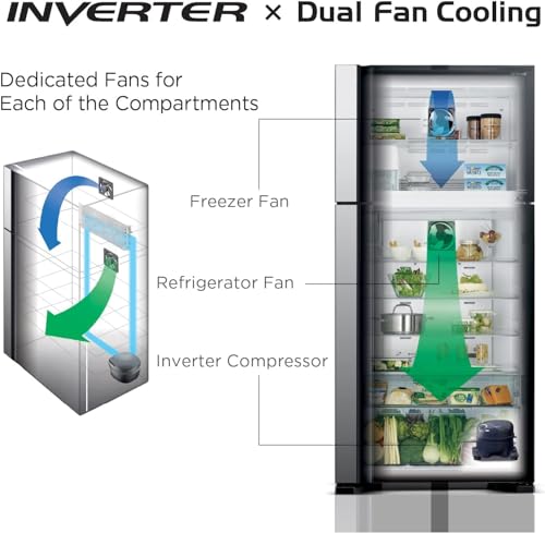 HITACHI - Hitachi 565 L Top Mount Refrigirator, Inverter control system Brilliant Silver HRTN8565DF International Warranty