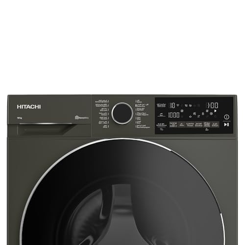 HITACHI - مجفف غسيل 10 كجم وتجفيف 6 كجم - 1400 دورة في الدقيقة - تقنية ستيم كيور - محرك عاكس برو سمارت - غسيل جاف فقط - برنامج سريع لمدة 14 دقيقة - بلوتوث - باب كبير XL - لون رمادي