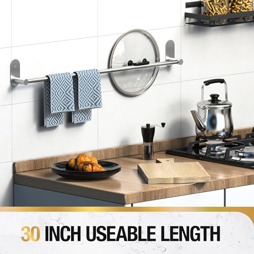 HITSLAM - هيتسلام حامل مناشف الحمام SUS304، بدون ثقب، فضي، 76 سم، حامل منشفة الحمام، من الستانلس ستيل، ديكور منزلي حديث، حامل مناشف الحمام، حامل منشفة، ذاتي اللصق