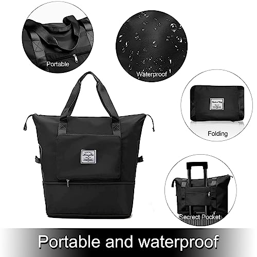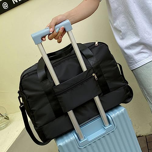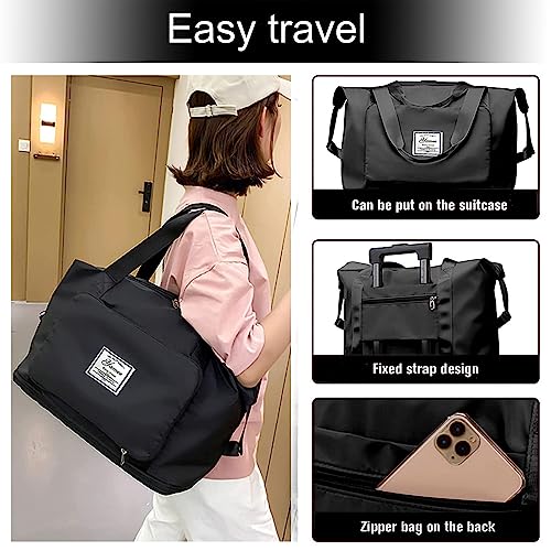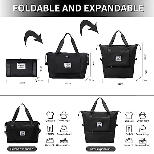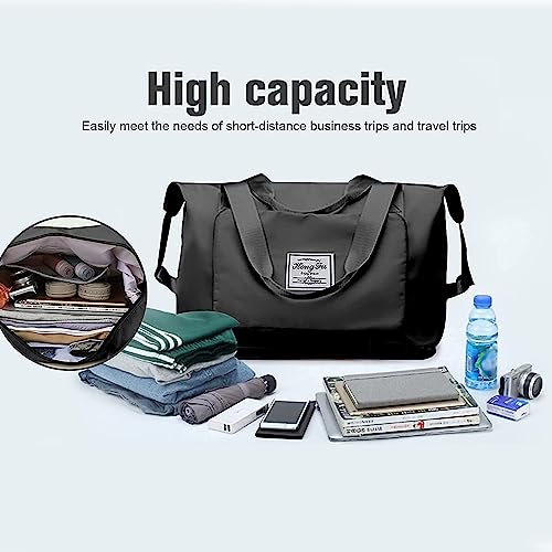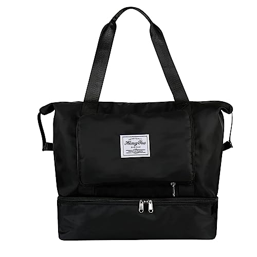 HIUAUIH - شنطة سفر قابلة للطي بسعة كبيرة، شنطة يد مقاومة للماء للنساء لعطلة نهاية الأسبوع، شنط يد خفيفة الوزن لعطلة نهاية الأسبوع والتسوق والجيم, أسود/أبيض، البوليستر، من هيواويه