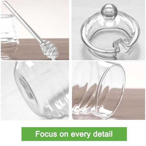 - 【زجاج شفاف للتحقق من البقايا】يجعل البرطمان الزجاجي الشفاف من السهل رؤية العسل الزائد في وعاء العسل، مما يجعل من السهل معرفة وقت إعادة الملء.