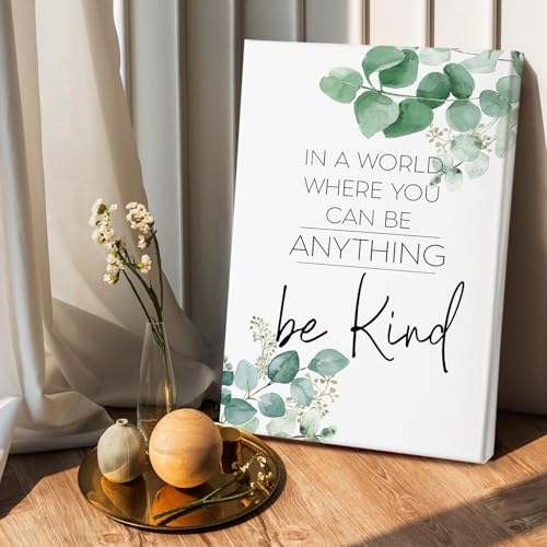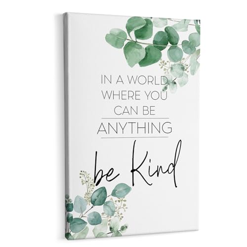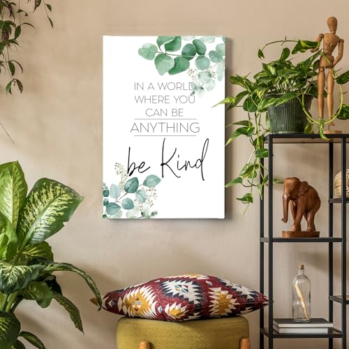 HIWX - HIWX Be Kind Inspirational Wall Art Decor, Kind Sign Framed Canvas for Bedroom Bathroom, 16x24