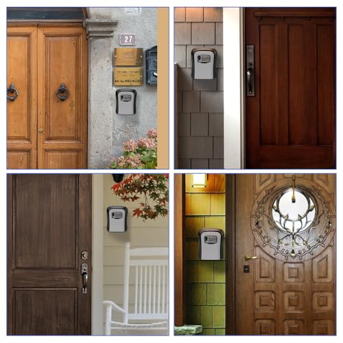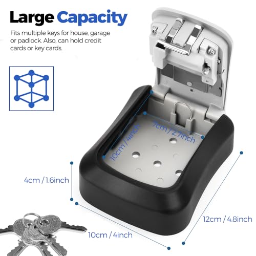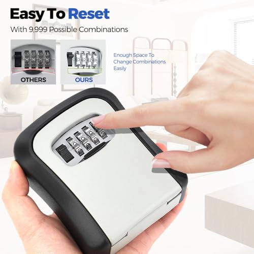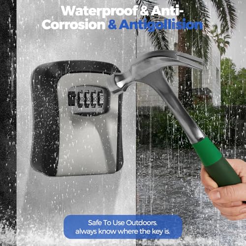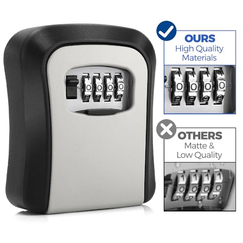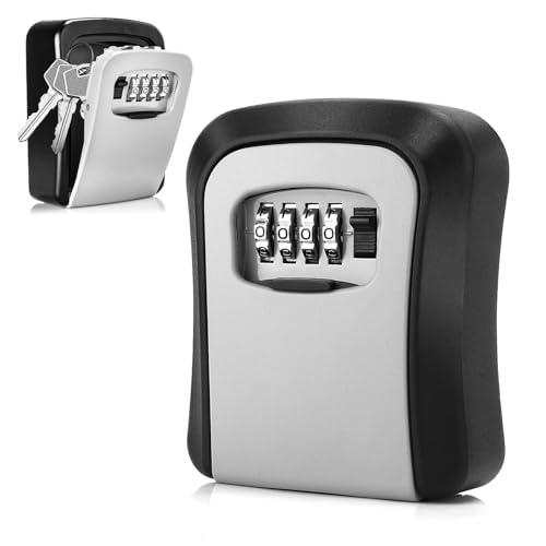 - Key Safe Wall Mounted Key Lock Box Outdoor, All-Metal Key Box 4 Digit Combination, Heavy Duty Waterproof Key Cabinet for Home Office Garage School - Black & Silver