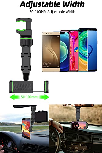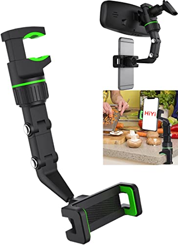 HiYi - Car Mirror Phone Holder Mount, Multifunctional Pop Rearview Mirror Phone Holder Car Accessories, 360° Car Rearview Mirror Mount Phone GPS Holder Cell Phone Stand for Car Desk (1PC-Green)