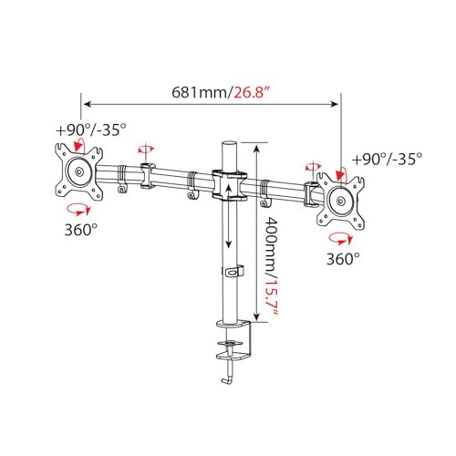 - The arms can be rotated 360°, the monitors can be rotated 360°, swivelled 180° and tilted -90°/+35°