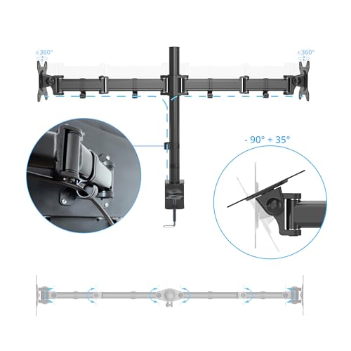 hjh OFFICE - hjh OFFICE 802000 Monitor Mount 2-Arm 13 - 27 Inch VM-MF2 Steel Black Monitor Arm 360° Rotatable Maximum Load 8 kg per Arm