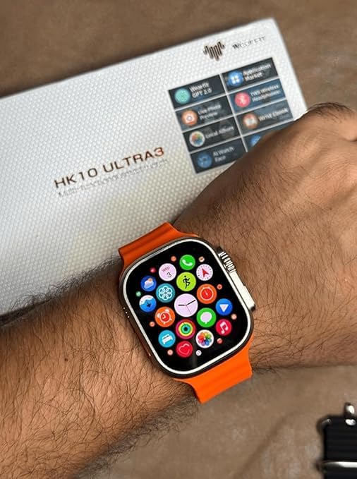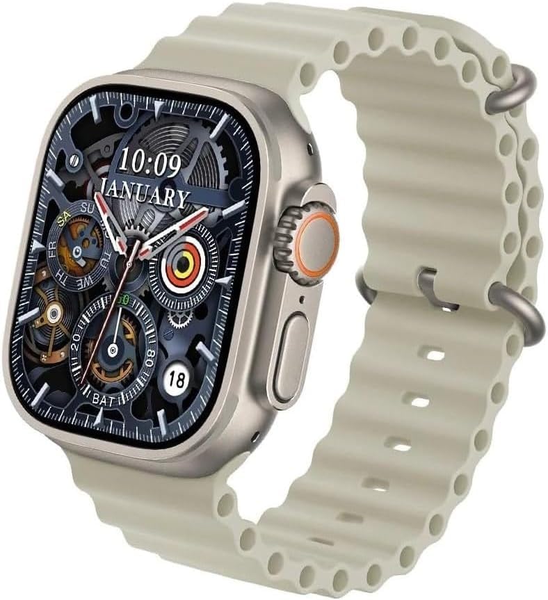 Generic - HK10 Ultra 3 Smart Watch Compatible with iPhone and Android, 1.9 Inch Touch Screen, Heart Rate Monitor, Waterproof, Silicone Strap Titanium Watch and Black Strap