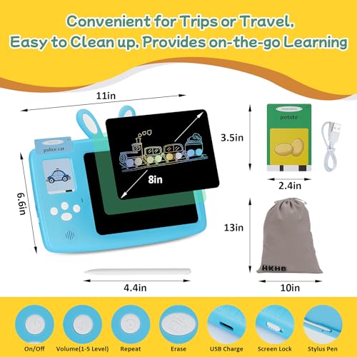 HKHB - Talking Flash Cards Learning Toys - Reading & Writing Speech Therapy Autism Sensory Toy for Toddlers 2-6 Years Old Kids (224 Words - Blue)