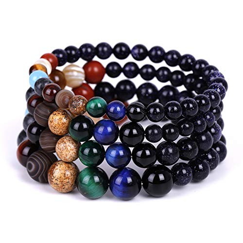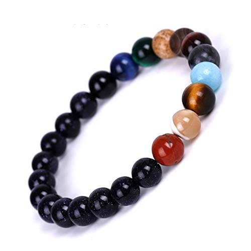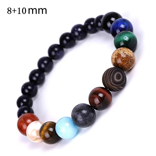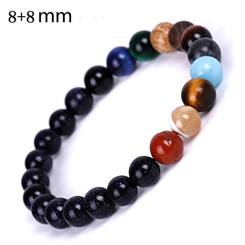 Generic - سوار متعدد التصميم بخرز من احجار طبيعية بتصميم المجموعة الشمسية بـ8 كواكب للنساء والرجال اتش ال مقاس: 8 ملم
