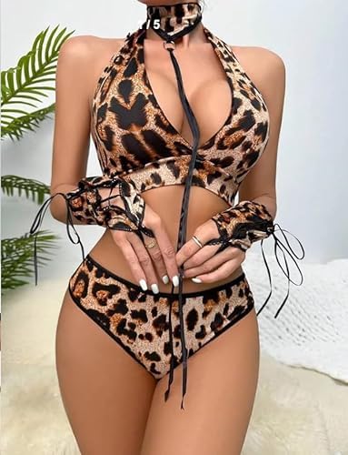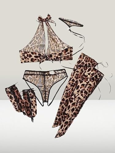 هنادي - طقم لانجري نسائي بتصميم جلد النمر – موديل HN8004 أنيق وجذاب بستايل عصري – وان سايز مناسب حتى 80 كيلو