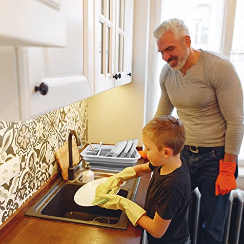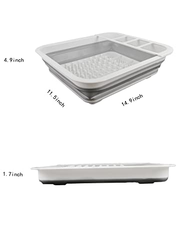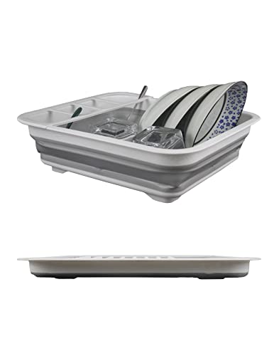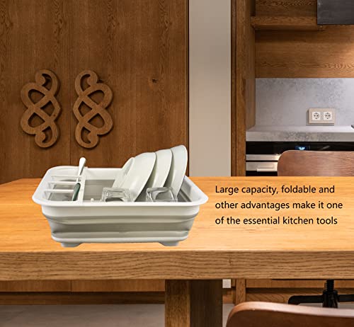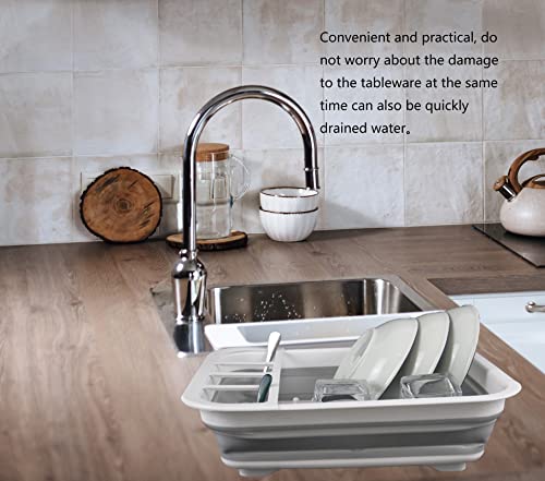 HNZZZM - رف تجفيف اطباق قابل للطي، رف تصريف مريح لتخزين الاطباق بفتحة تصريف في الأسفل مناسب للمطبخ وعربة المحطة، بلاستيك، رمادي وأبيض